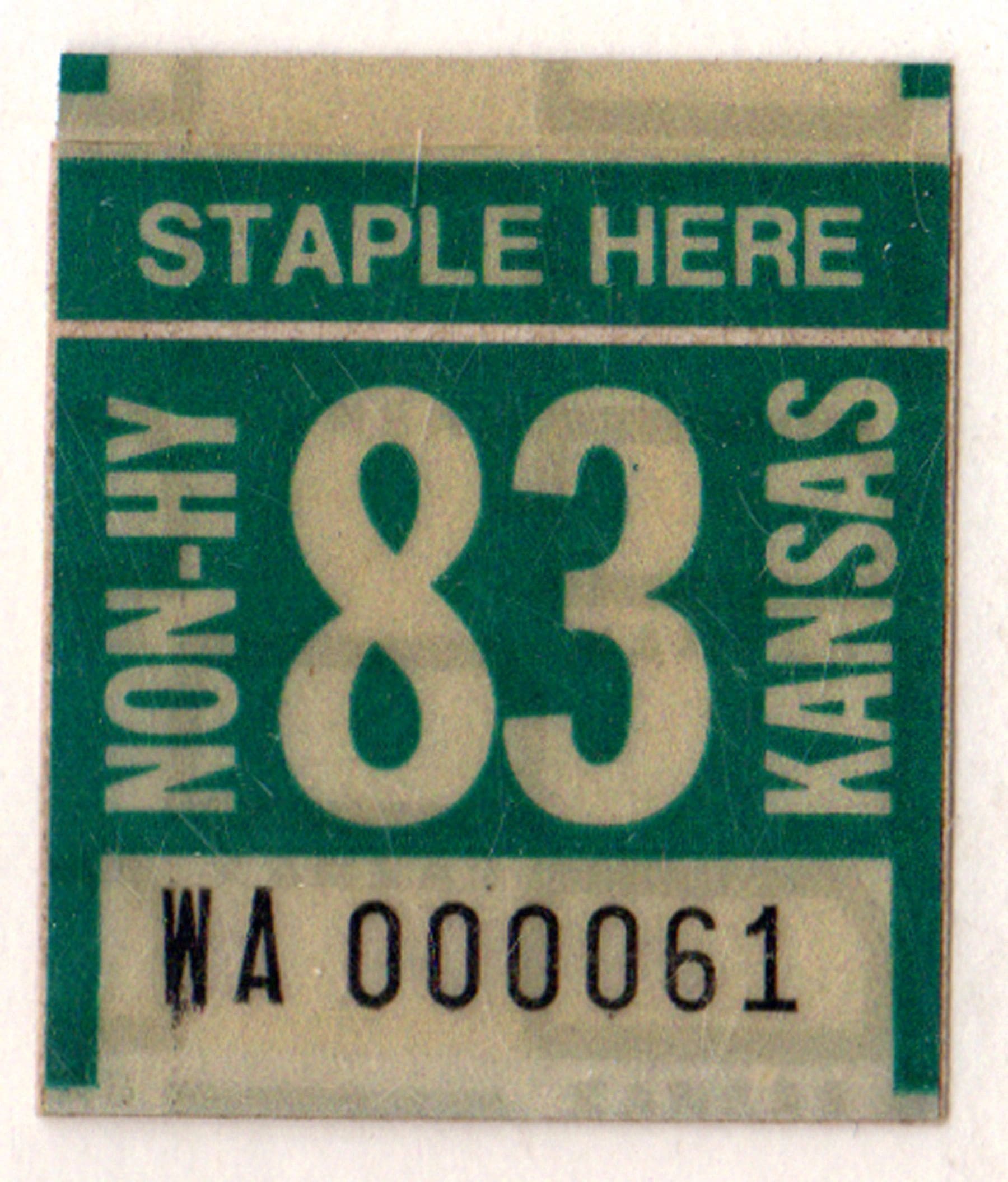 Kansas 1983 non highway license plate sticker Wallace county #WA-000061