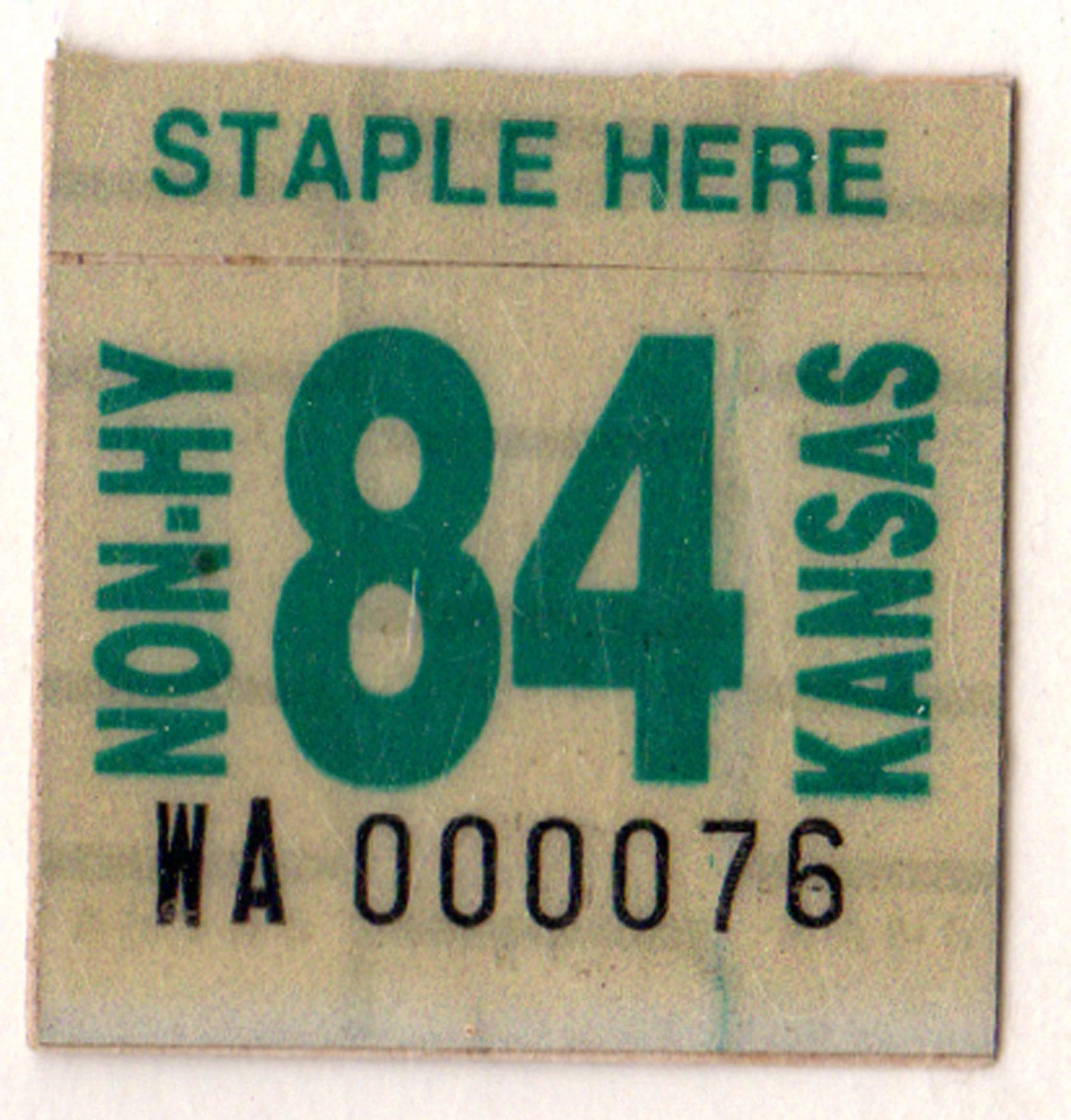Kansas 1984 non highway license plate sticker Wallace county #WA-000076