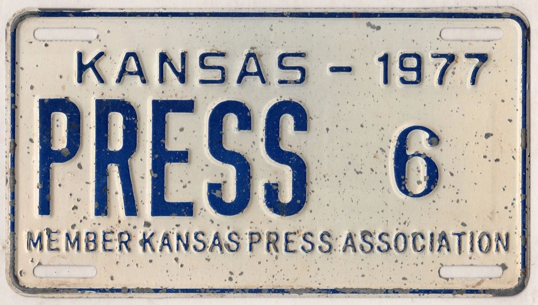 Kansas 1977 press license plate #6