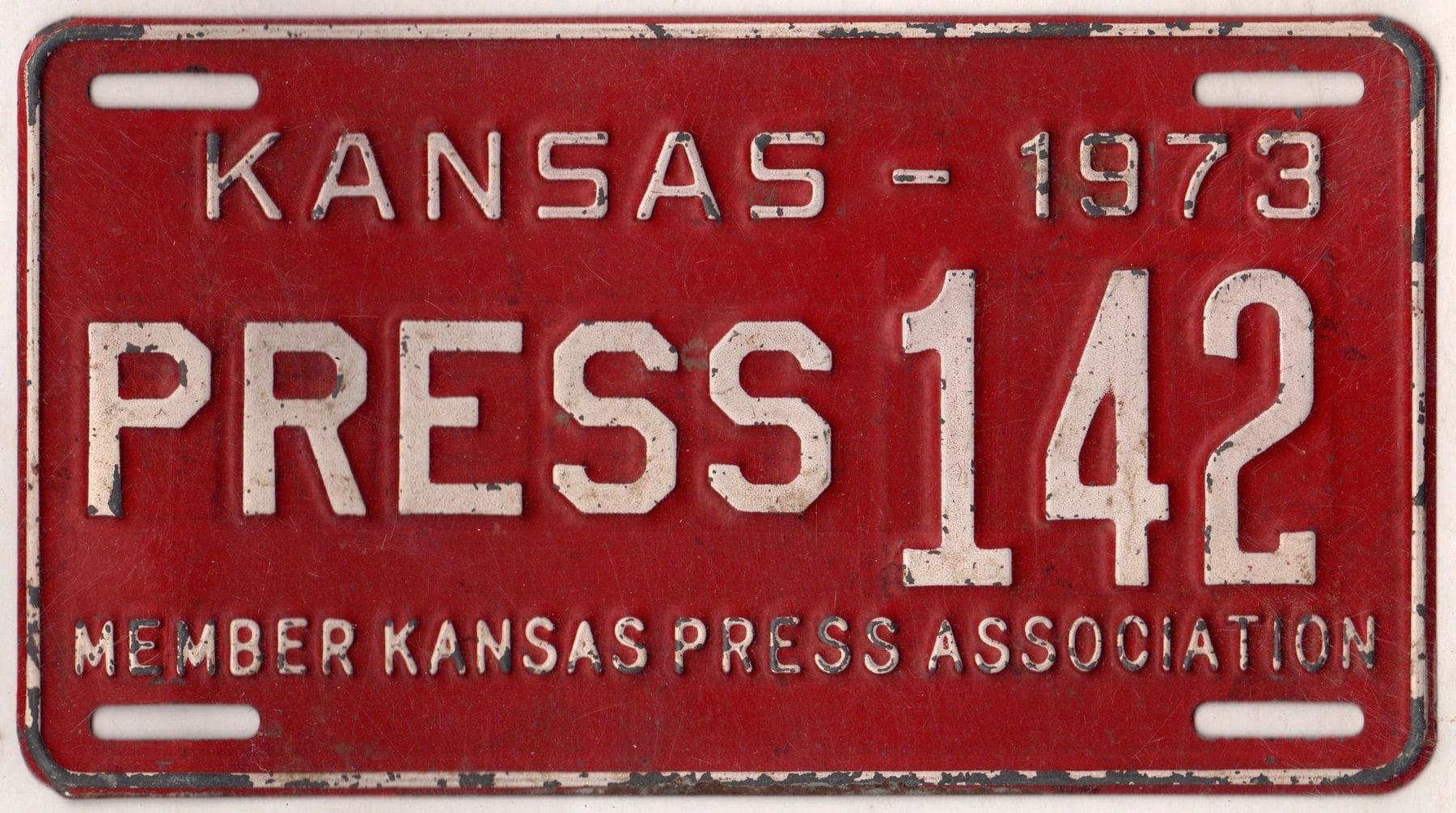 Kansas 1973 press license plate #142