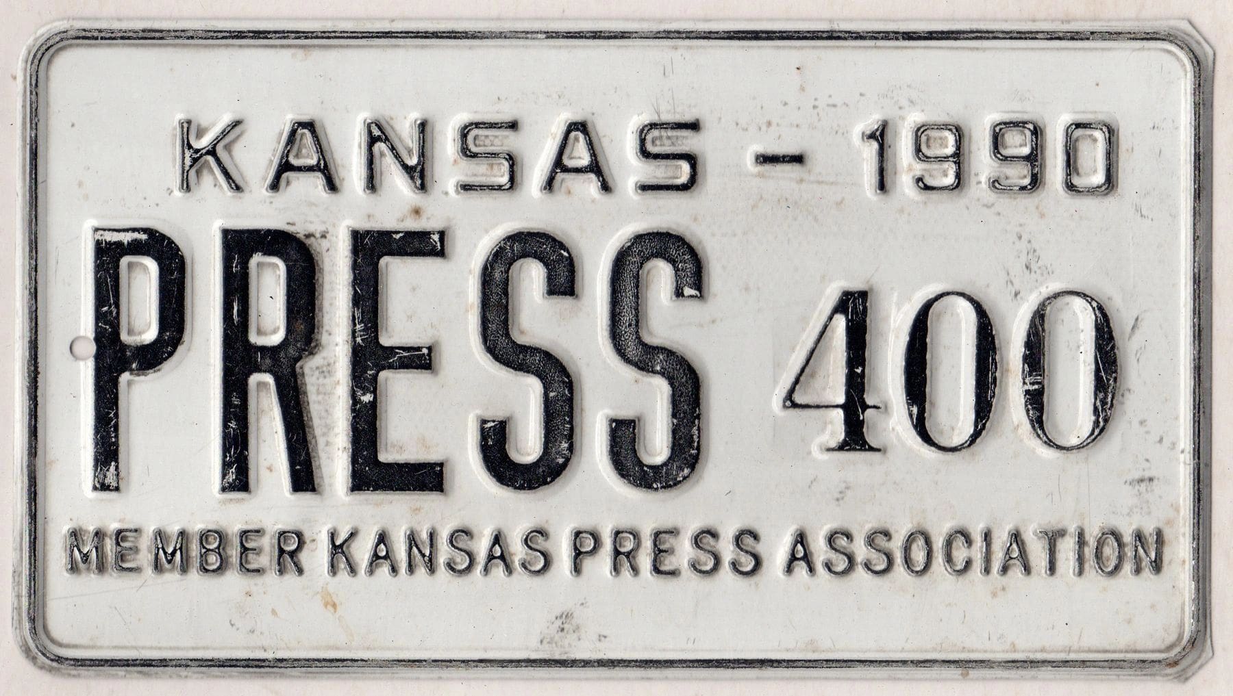 Kansas 1990 press license plate #400