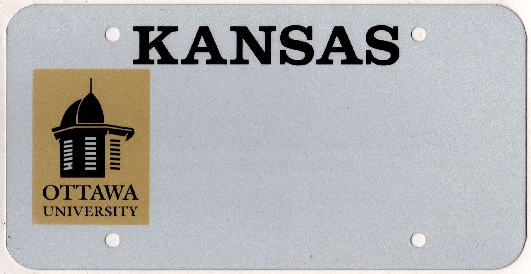 Kansas Ottawa University blank license plate