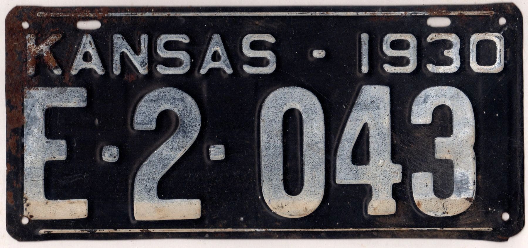 Kansas 1930 exempt license plate #E-2-043