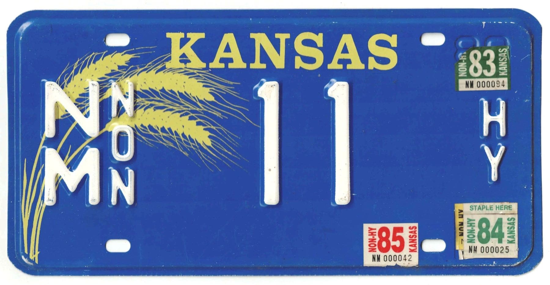 Kansas 1980 1982 1983 1984 1985 non highway license plate Nemaha county #NM-11
