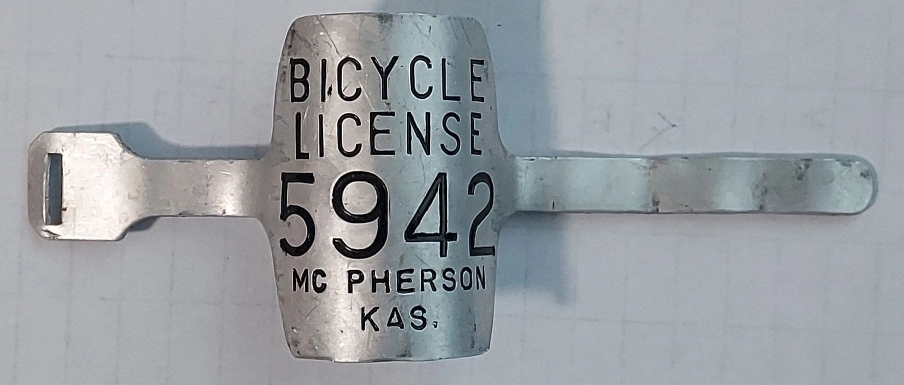 McPherson bicycle license plate #5942