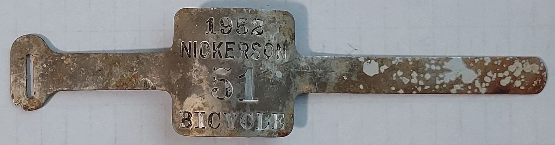 Nickerson 1952 bicycle license plate