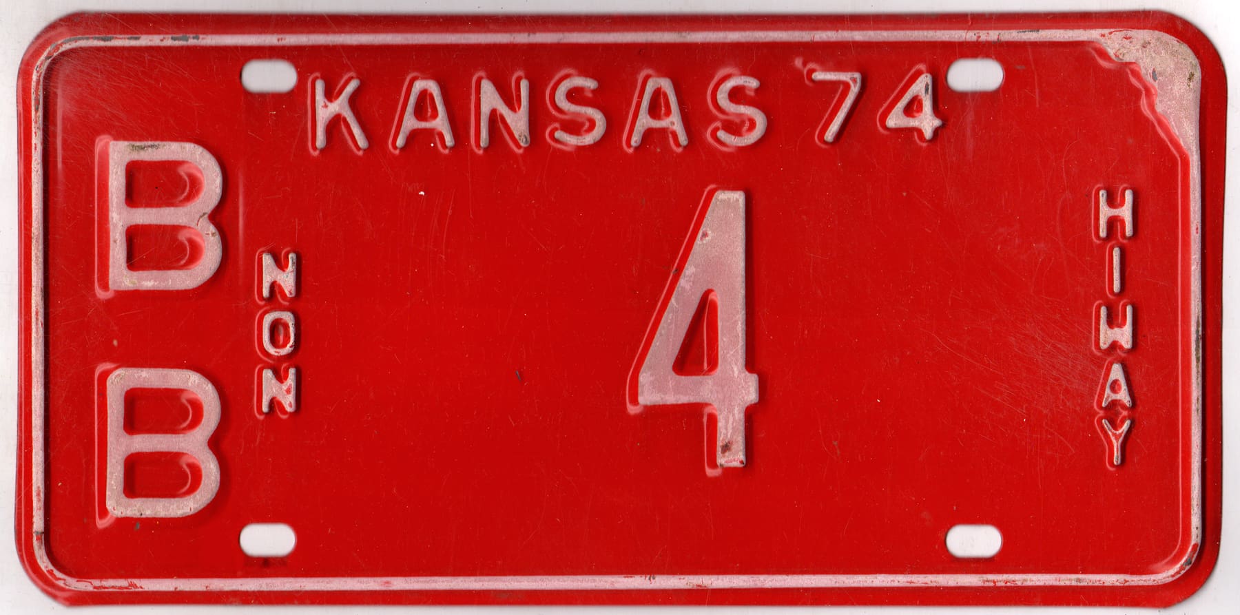 Kansas 1974 non highway license plate Bourbon county #BB-4