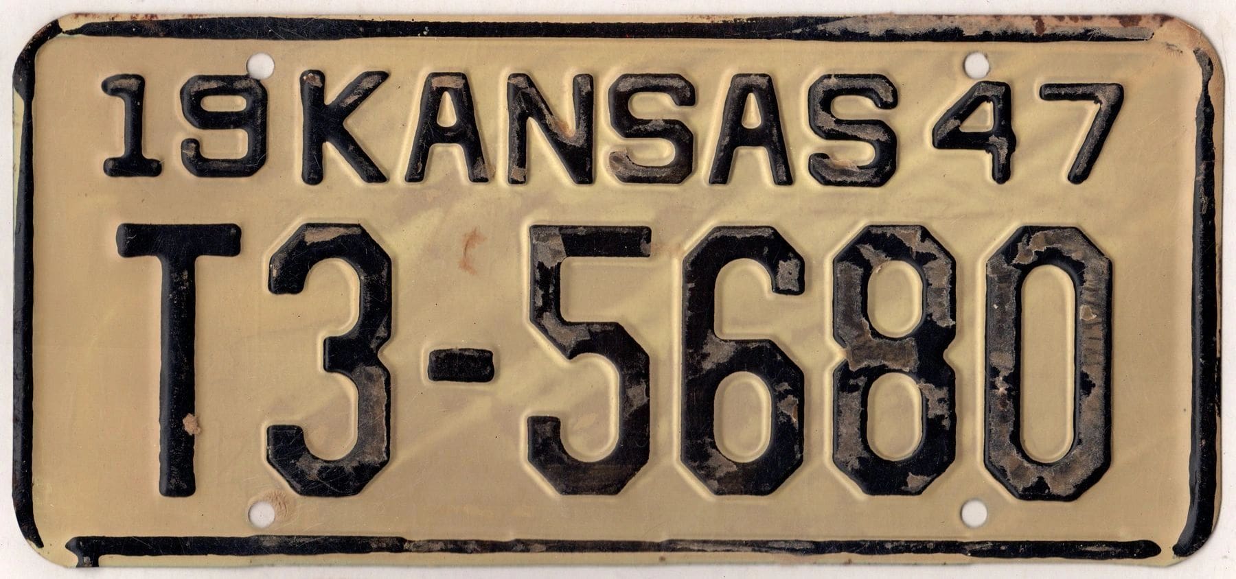 Kansas 1947 truck license plate Shawnee county #T3-5680