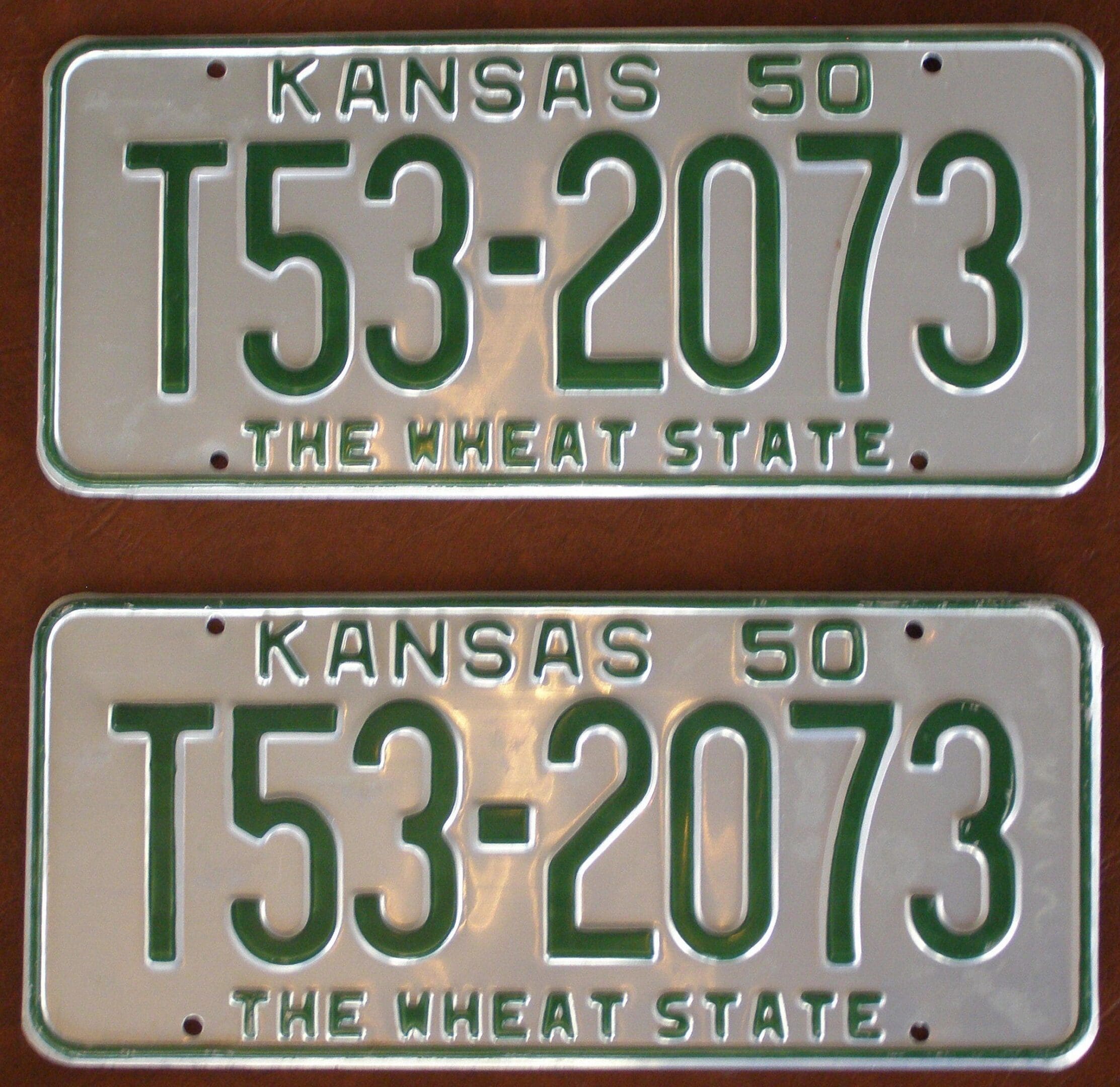 Kansas 1950 truck license plate pair Pratt county #T53-2073