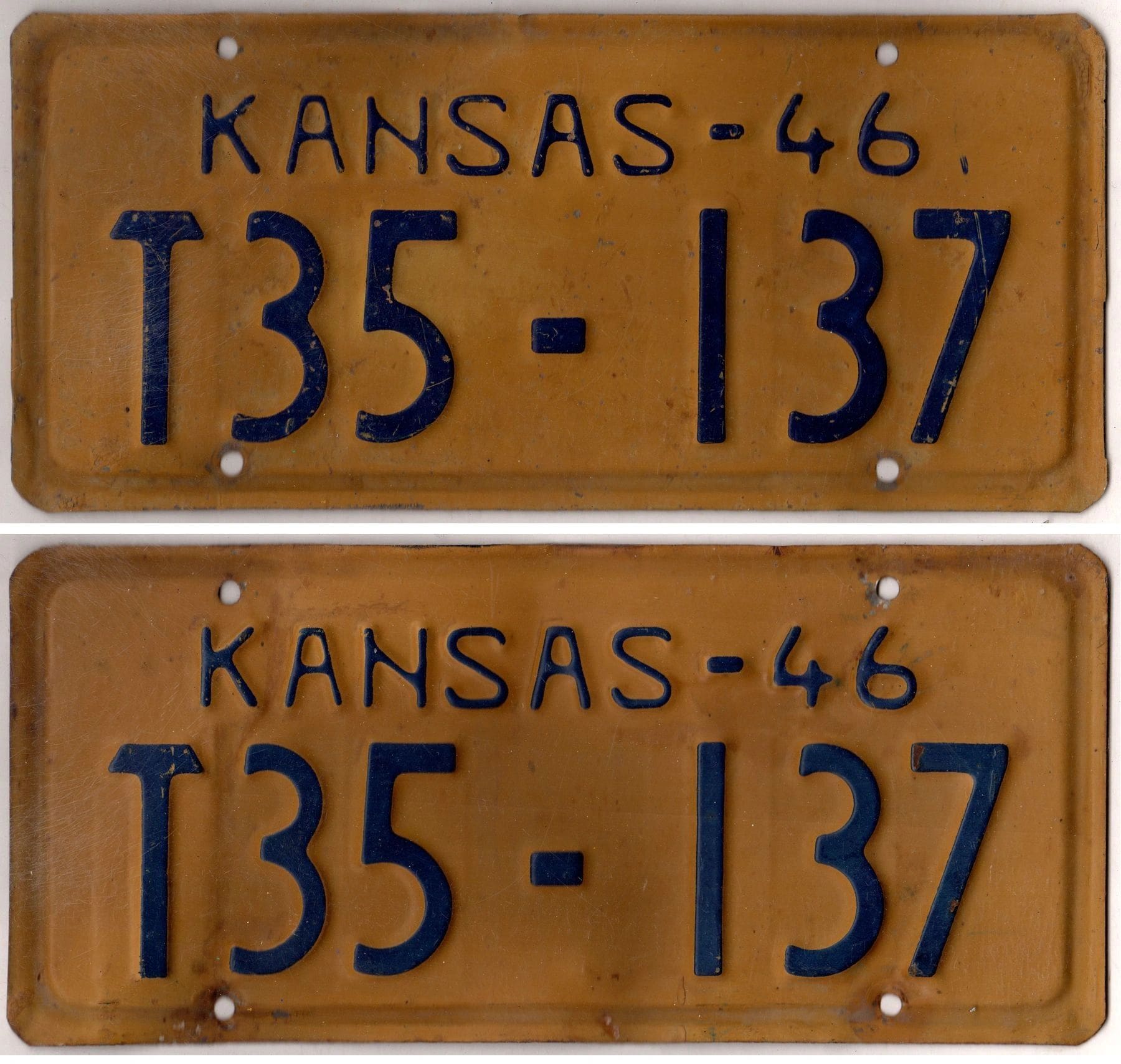 Kansas 1946 truck license plate pair Ford county #T35-137