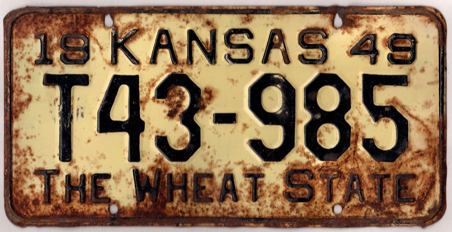 Kansas 1949 truck license plate Jewell county #T43-985