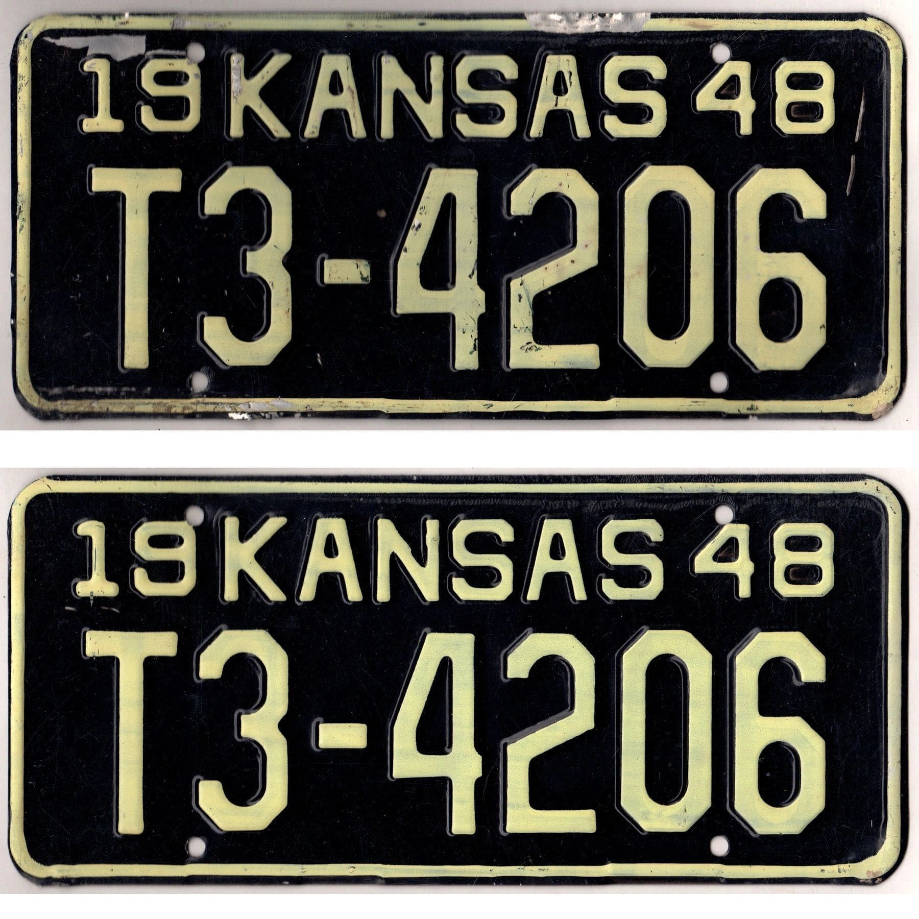 Kansas 1948 truck license plate pair Shawnee county #T3-4206