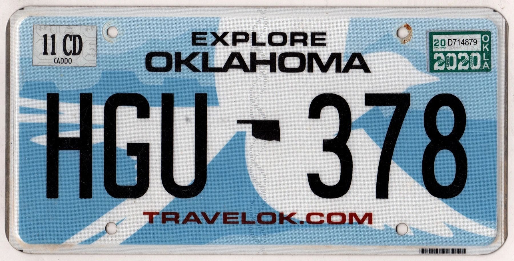 Oklahoma 2020 car license plate Caddo county #HGU-378