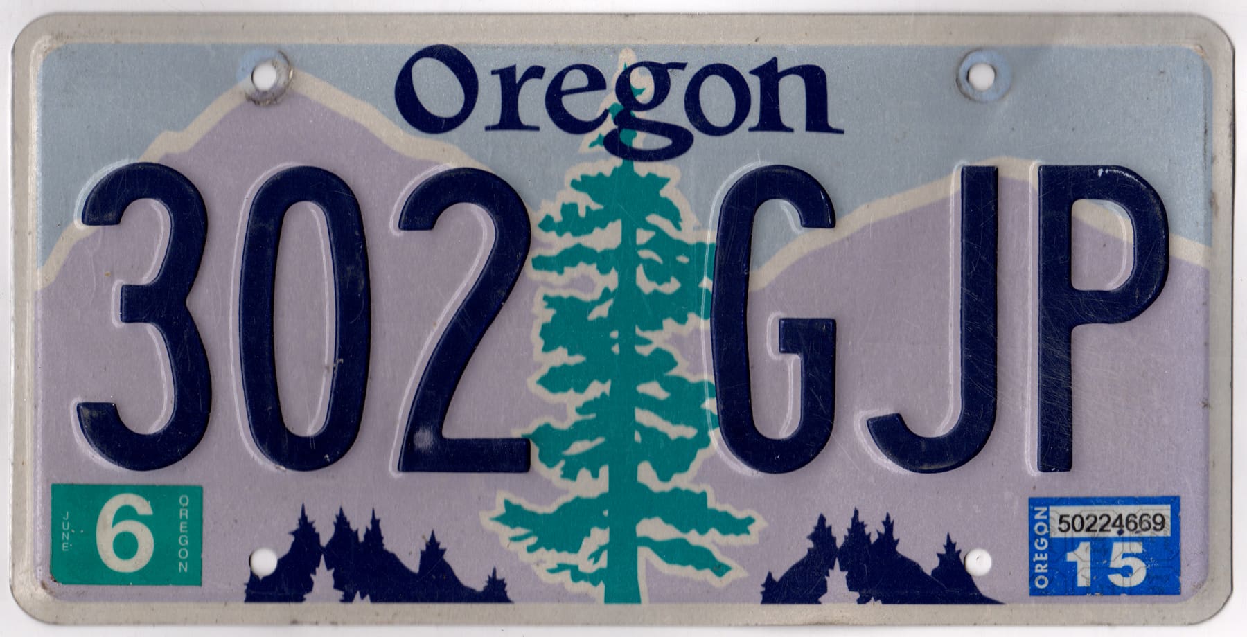 Oregon 2015 car license plate #302-GJP