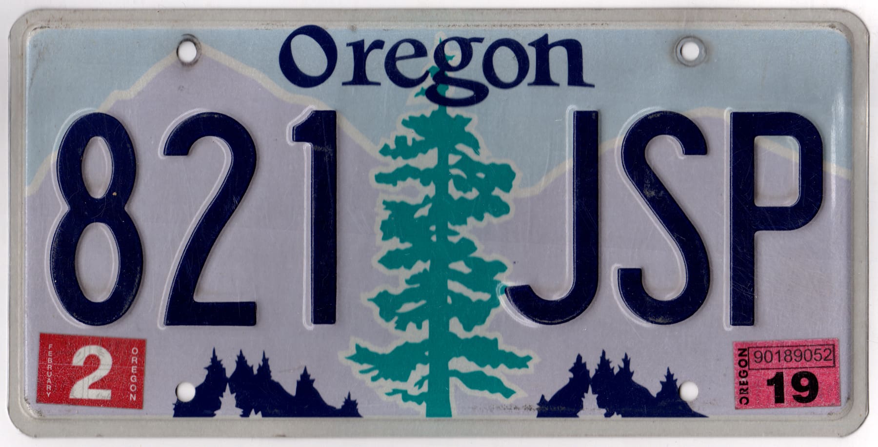 Oregon 2019 car license plate #821-JSP