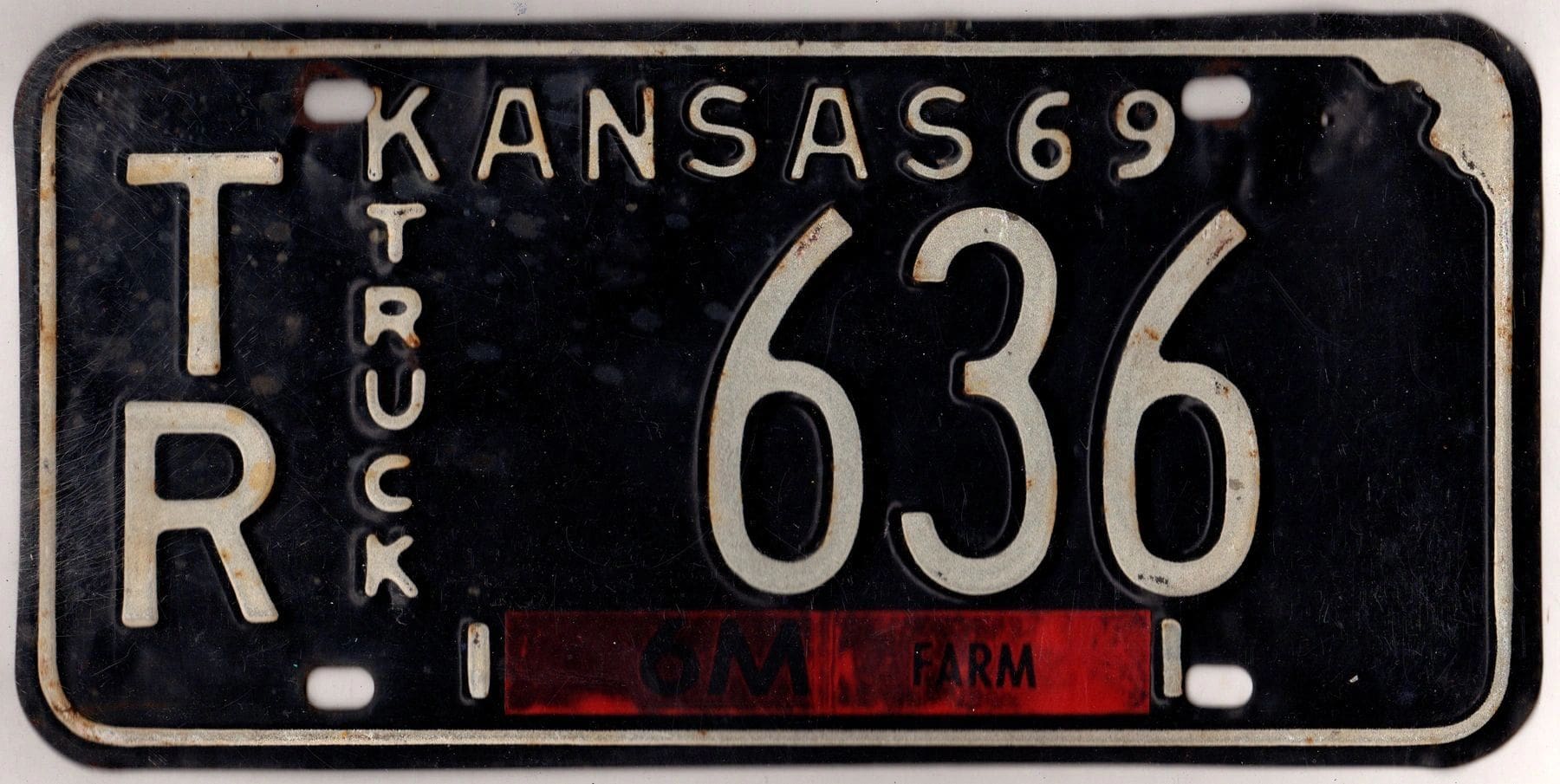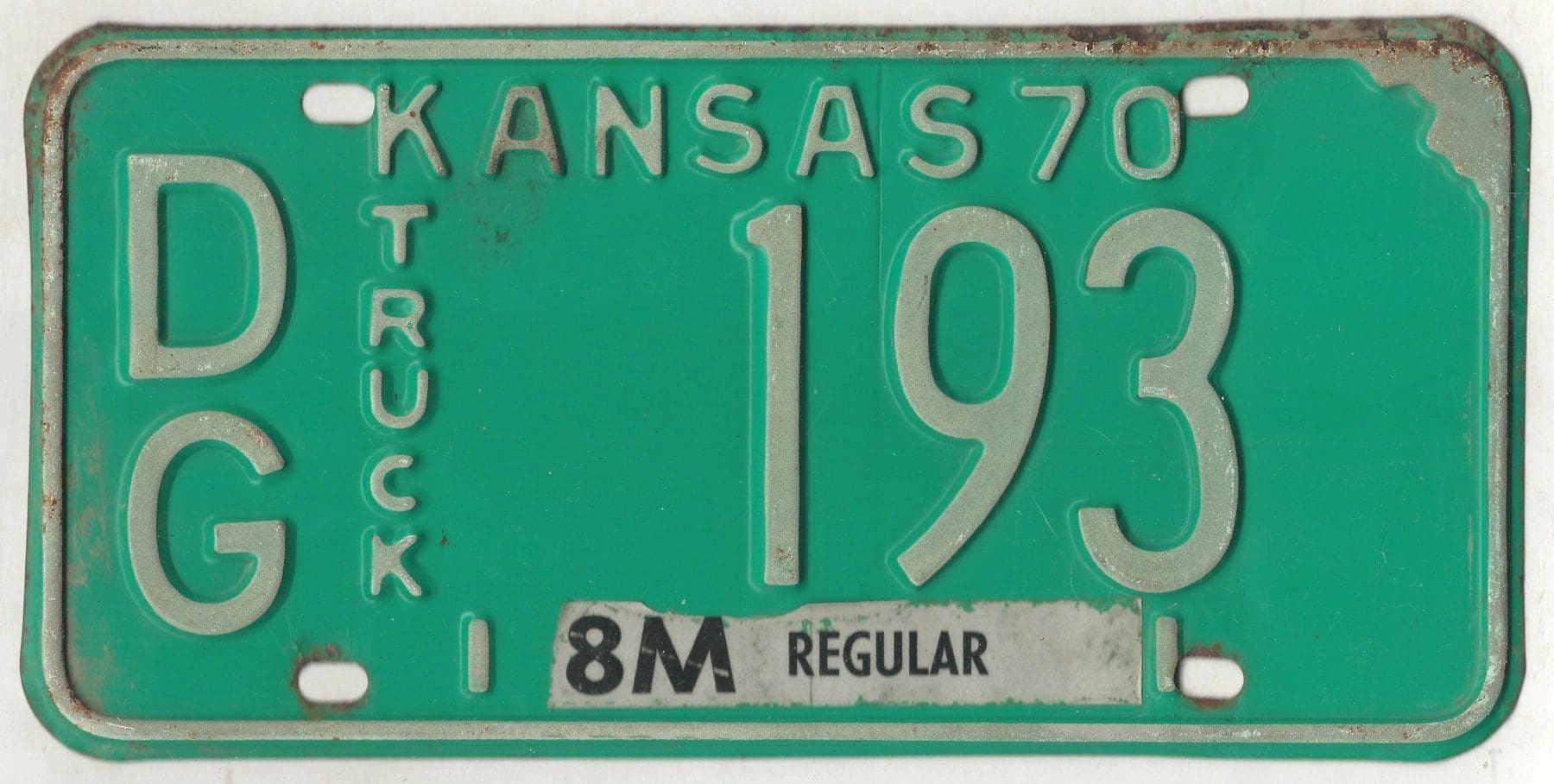 Kansas 1970 truck license plate Douglas county #DG-3051