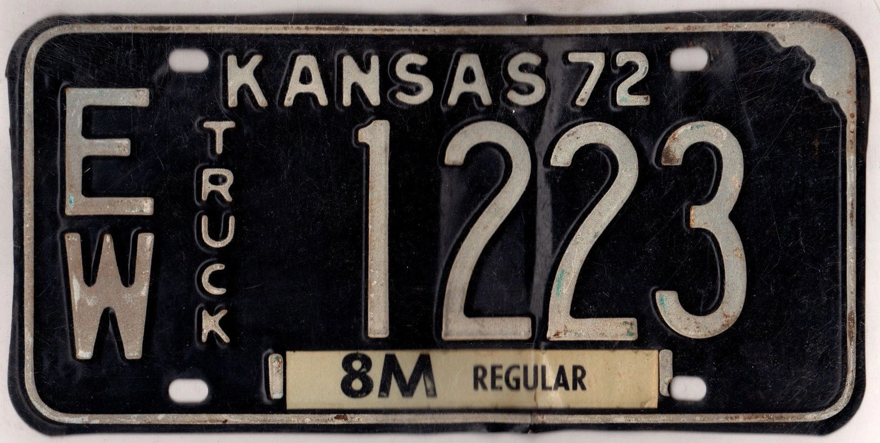 Kansas 1972 truck license plate Ellsworth county #EW-1223