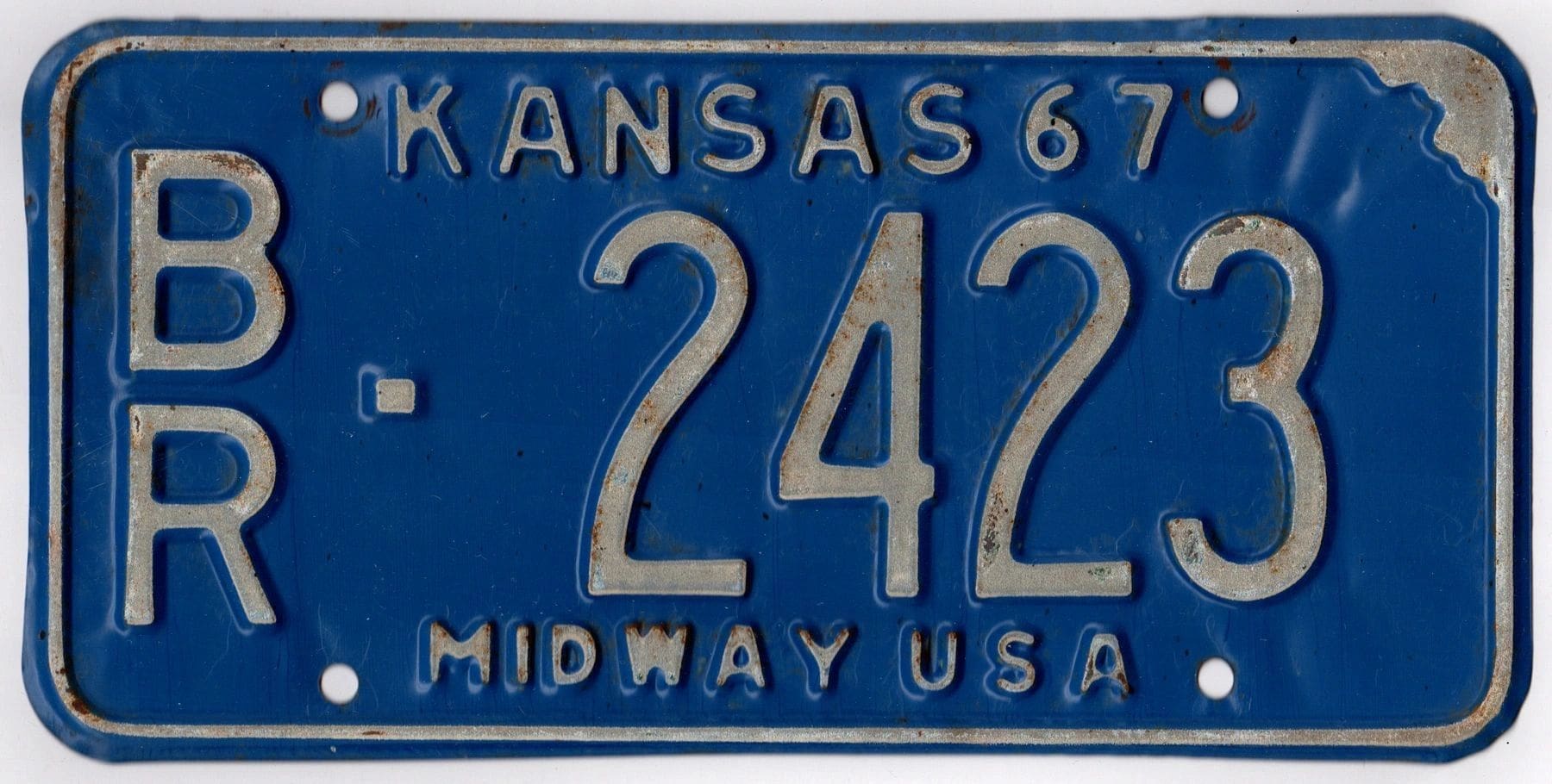 Kansas 1967 trailer license plate Sumner county #SU-485