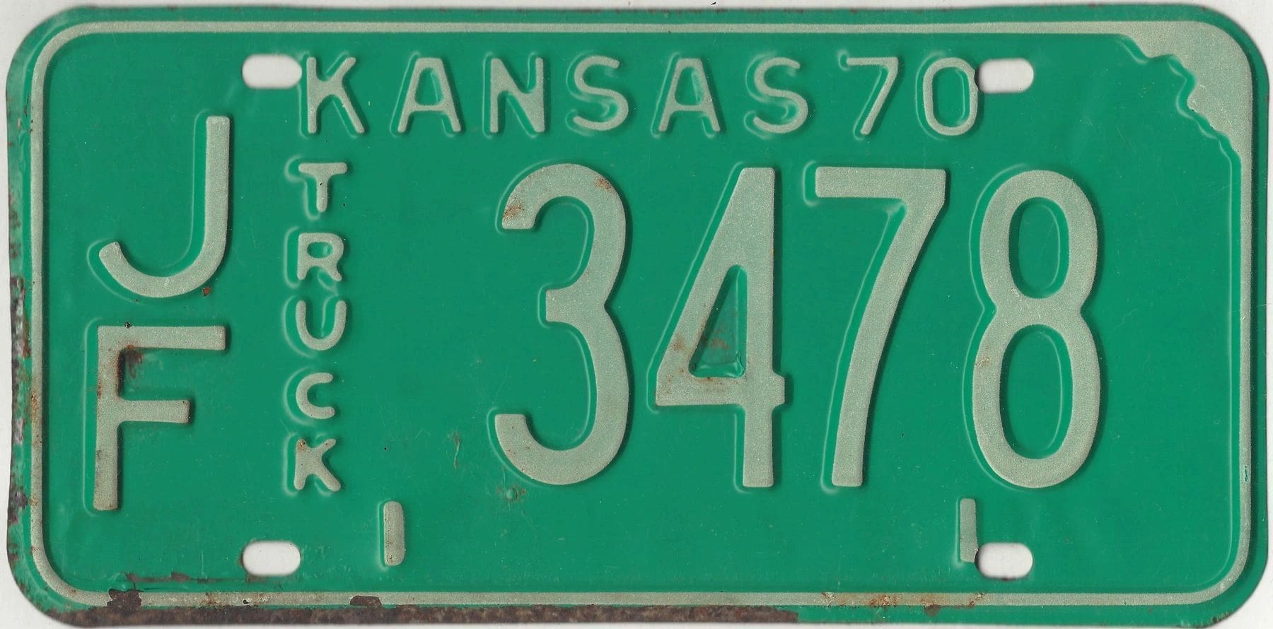 Kansas 1970 truck license plate Jefferson county #JF-3478