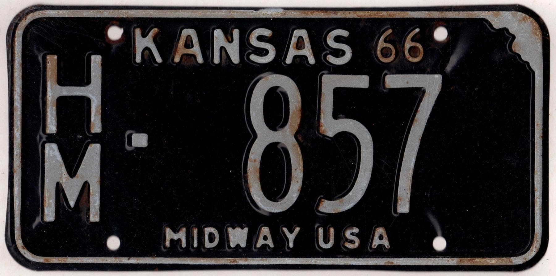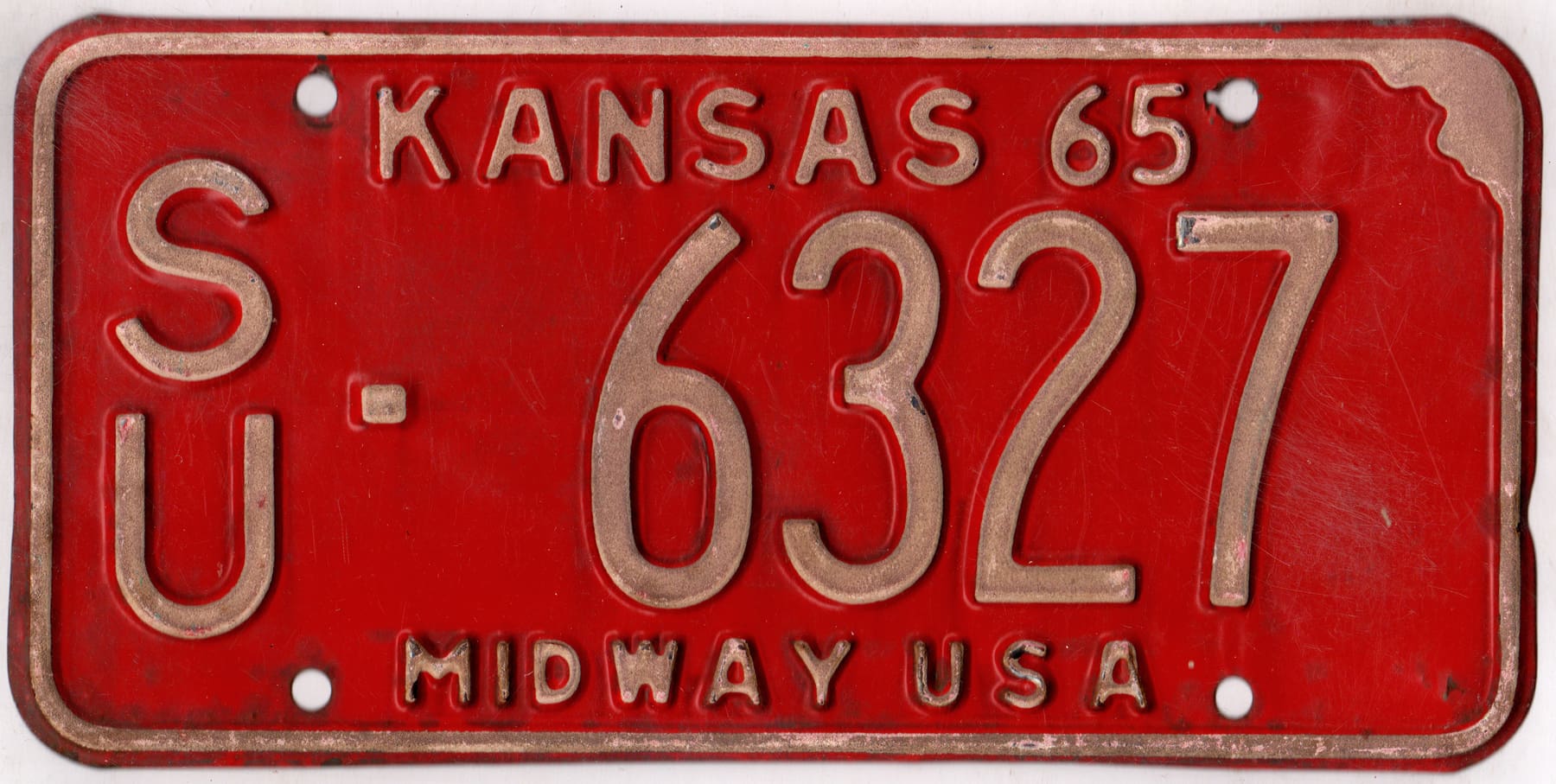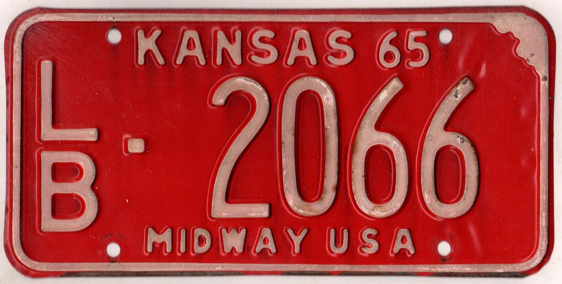 Kansas 1966 car license plate Shawnee county #SN-65753