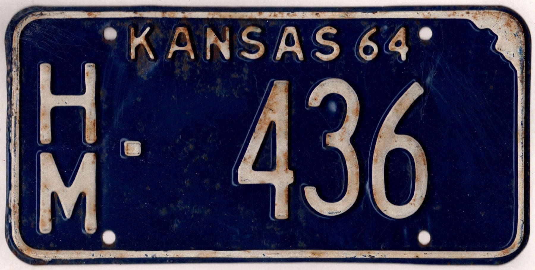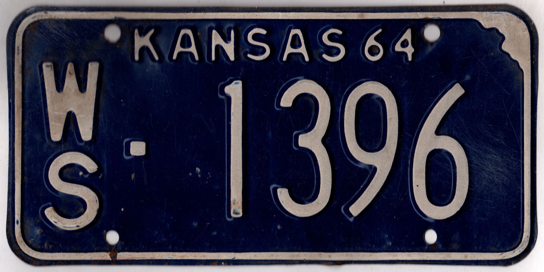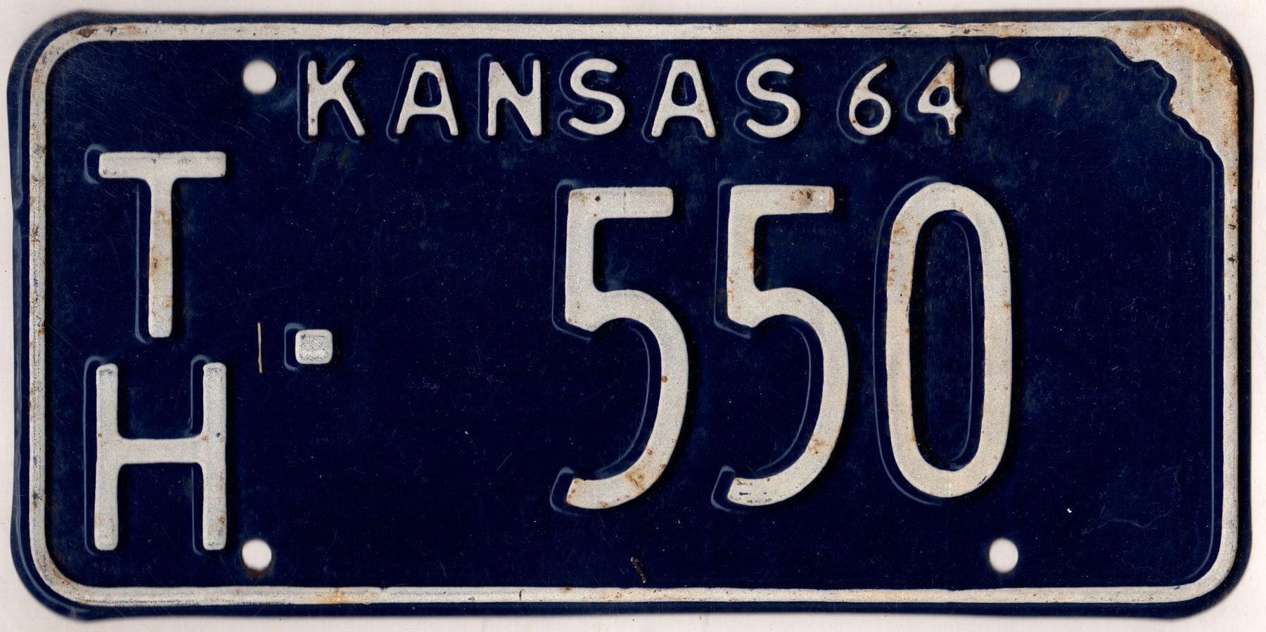 Kansas 1966 car license plate Shawnee county #SN-65753
