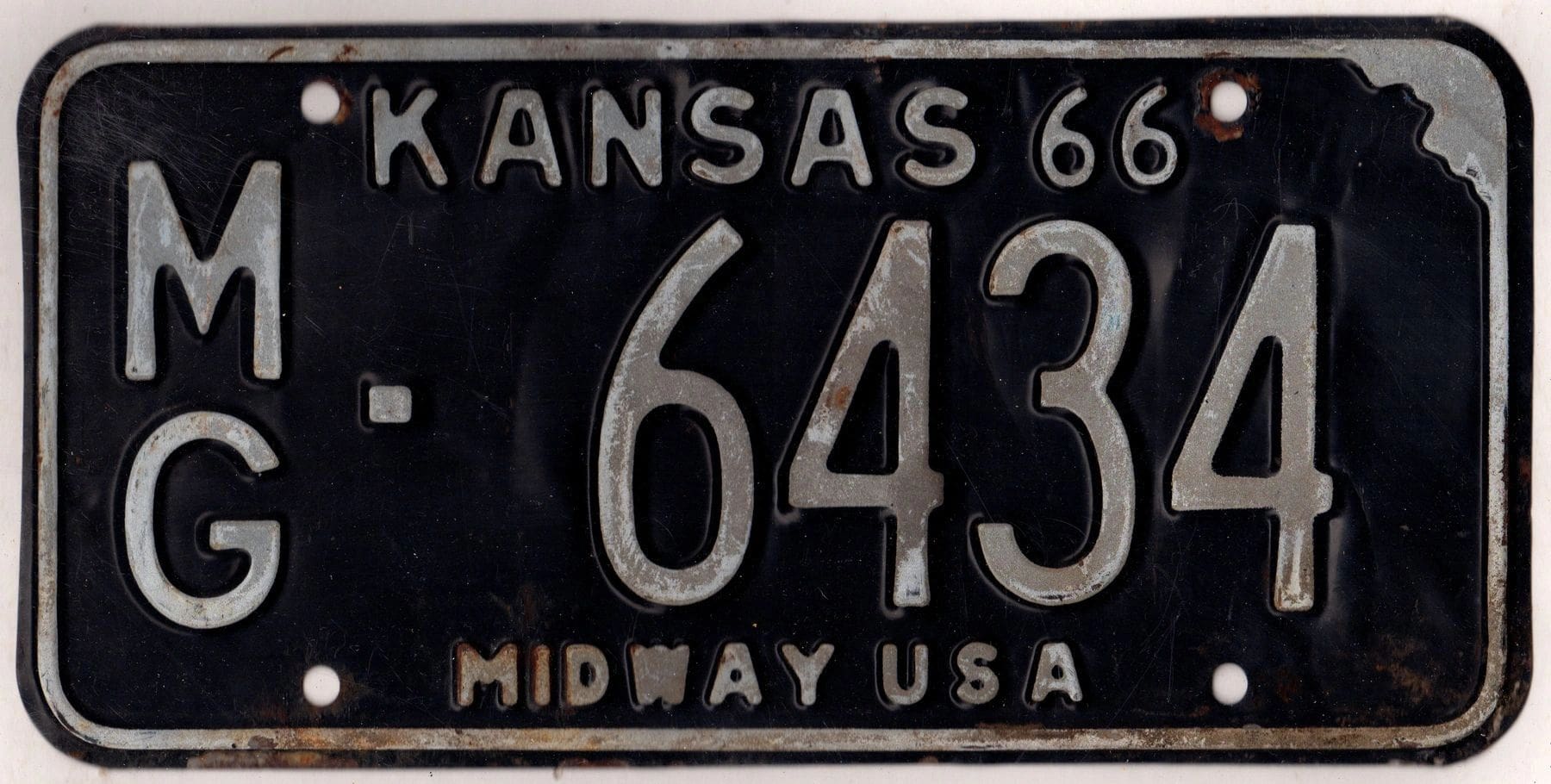 Kansas 1966 car license plate Montgomery county #MG-6434