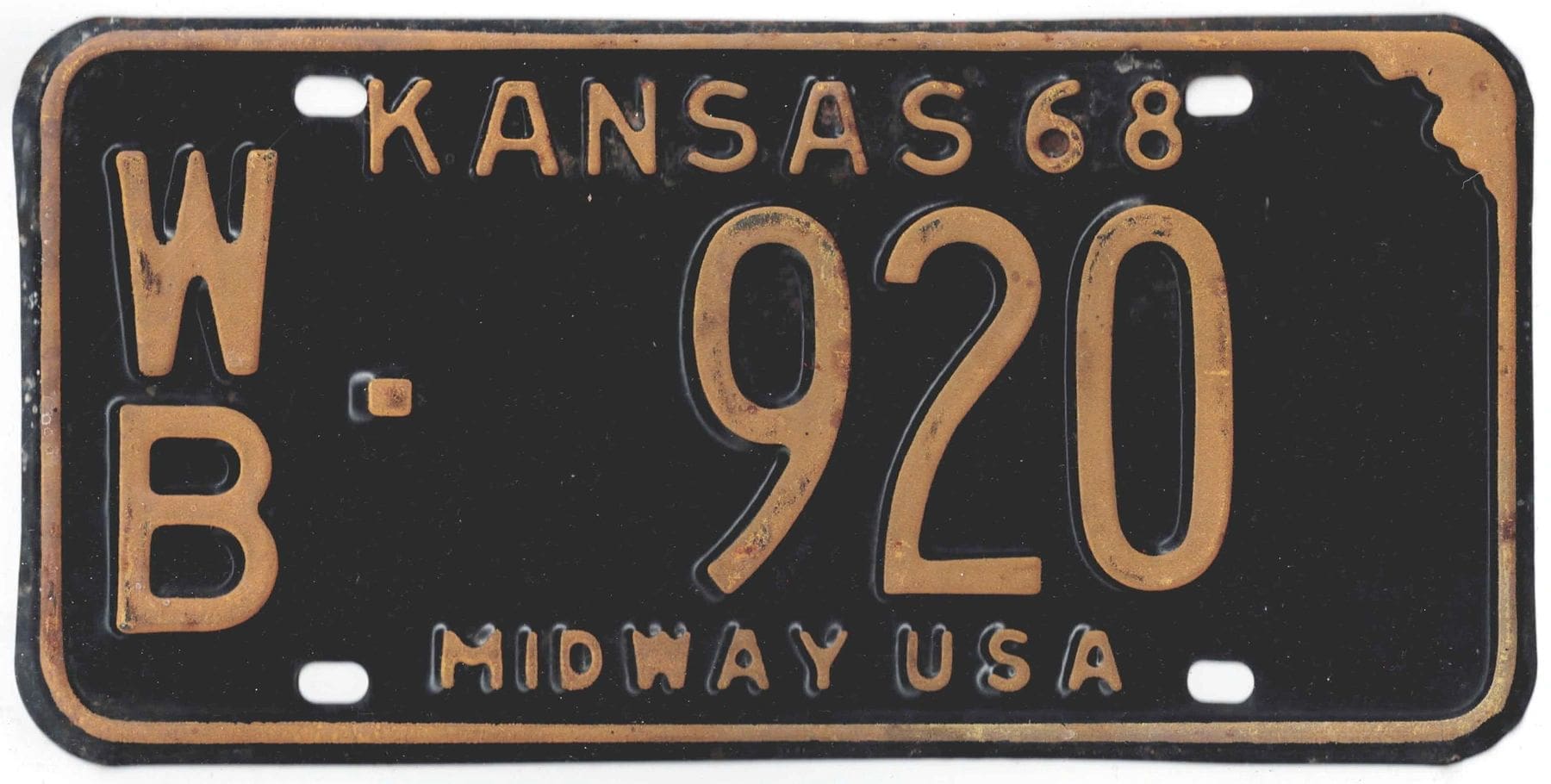 Kansas 1968 car license plate Wabaunsee county #WB-920