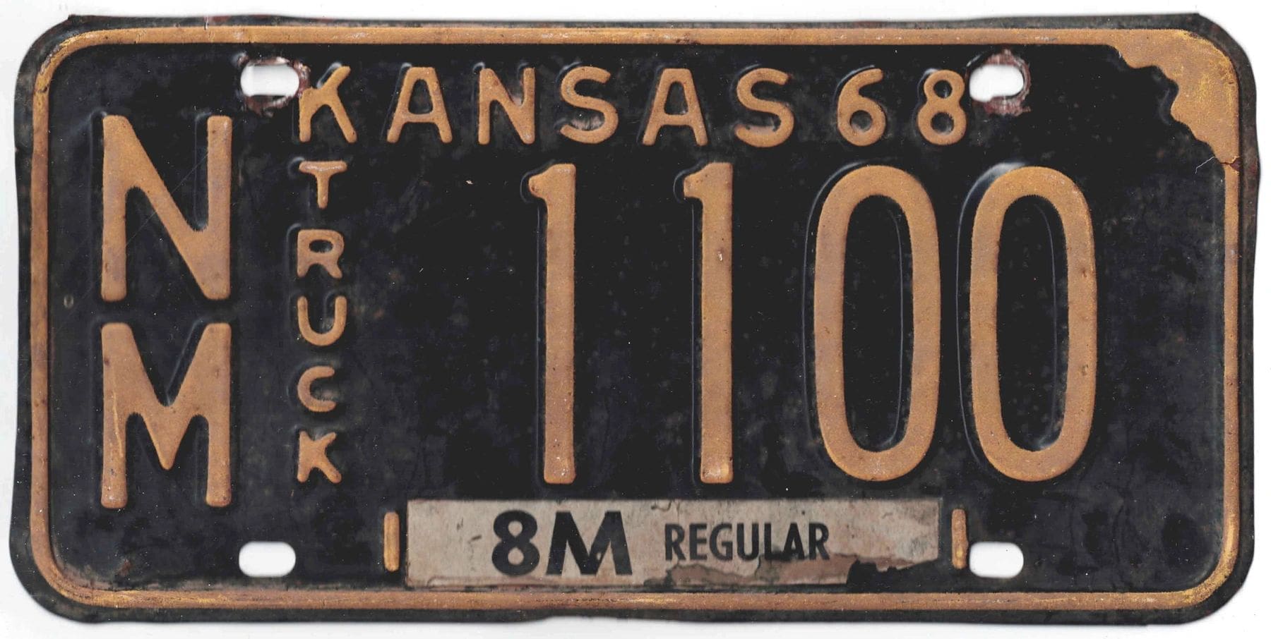 Kansas 1968 truck license plate Nemaha county #NM-1100