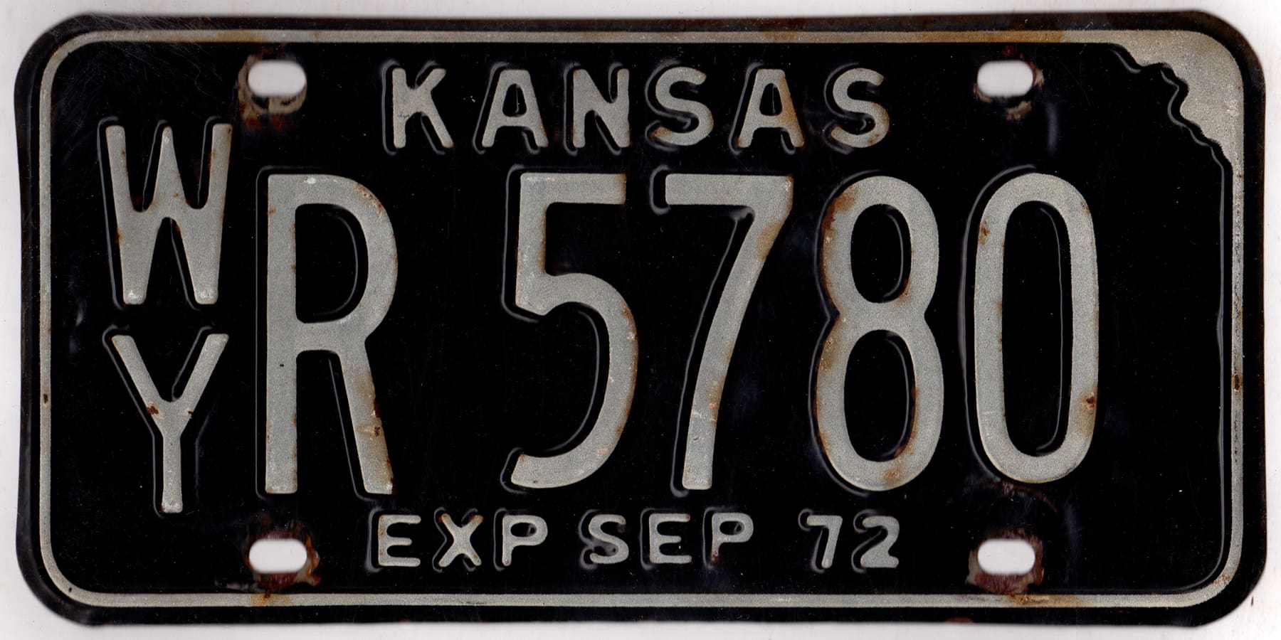 Kansas 1972 car license plate Wyandotte county #WY R-5780