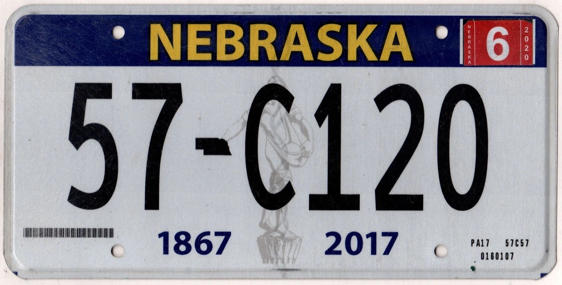 Nebraska 2020 car license plate Johnson county #57-C120