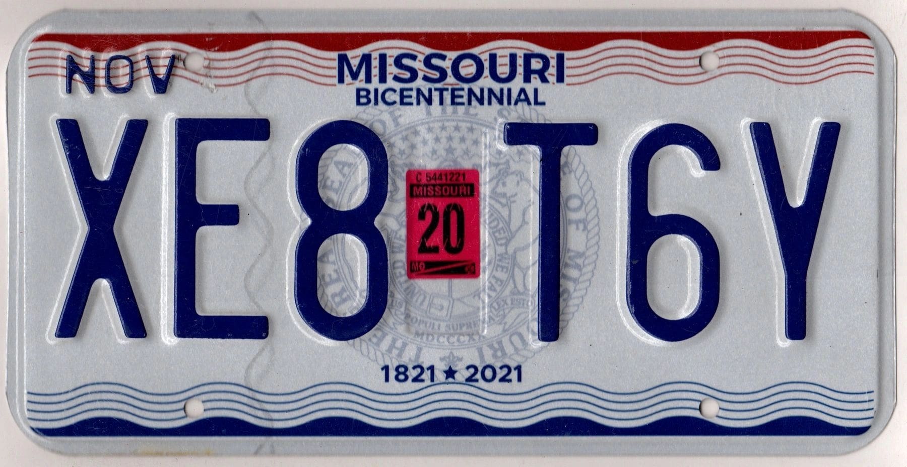 Missouri 2020 car license plate #XE8-T6Y
