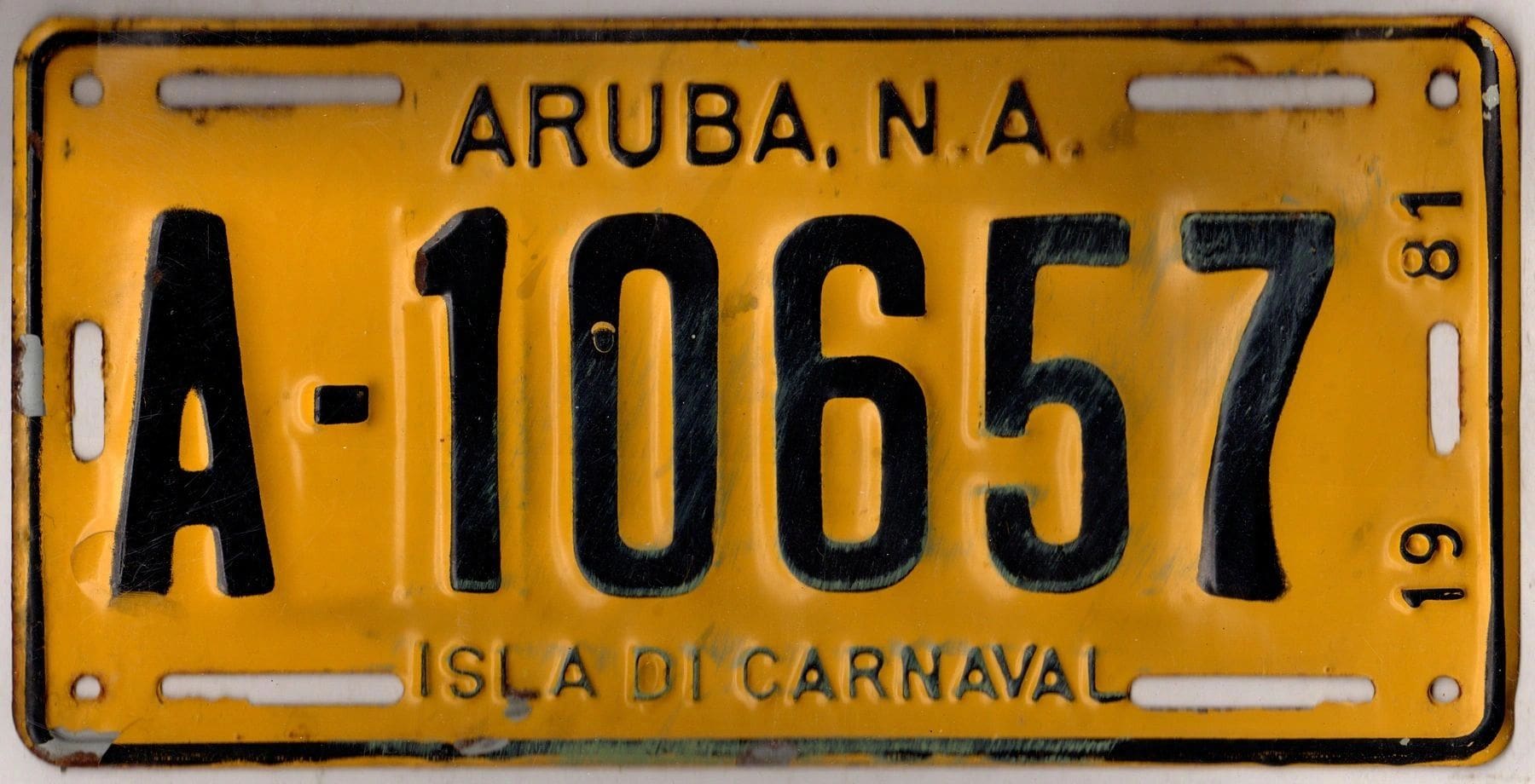 Aruba Netherlands Antilles 1981 car license plate #A-10657 quantity