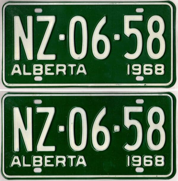 Canada Alberta 1968 car license plate pair #NZ-06-58.