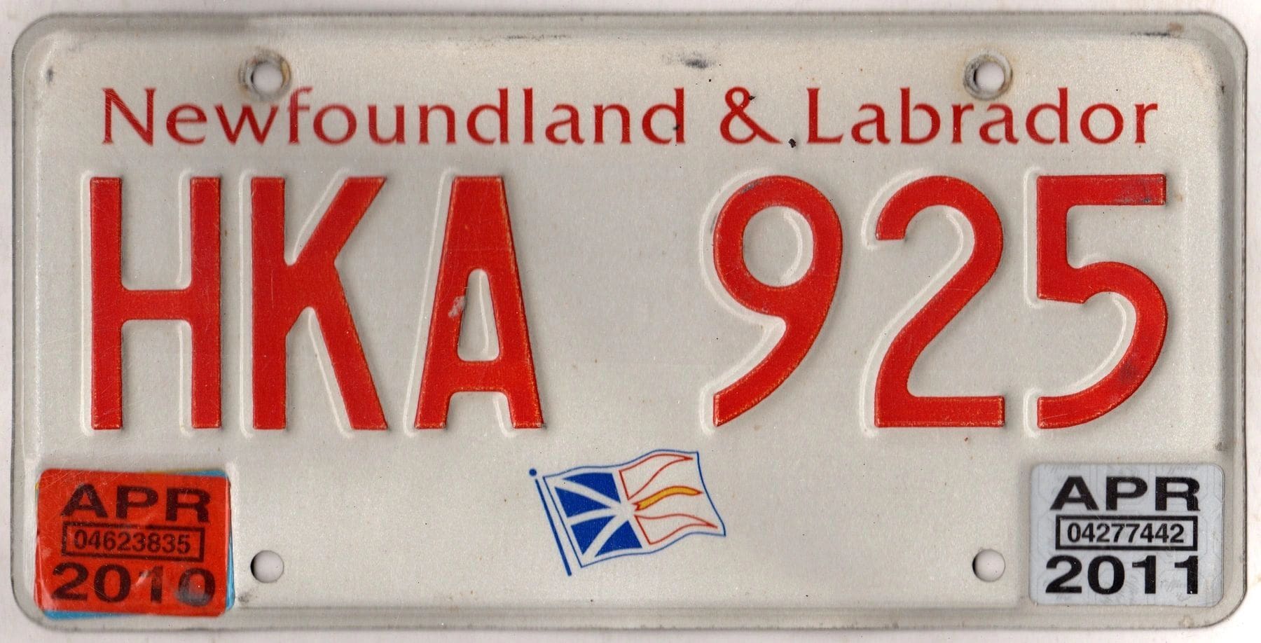 Canada New Foundland & Labrador 2010 2011 car license plate #HKA-925