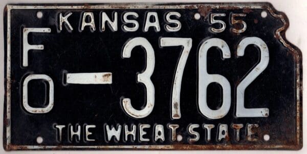 Kansas 1955 car license plate Ford county #FO-3762.