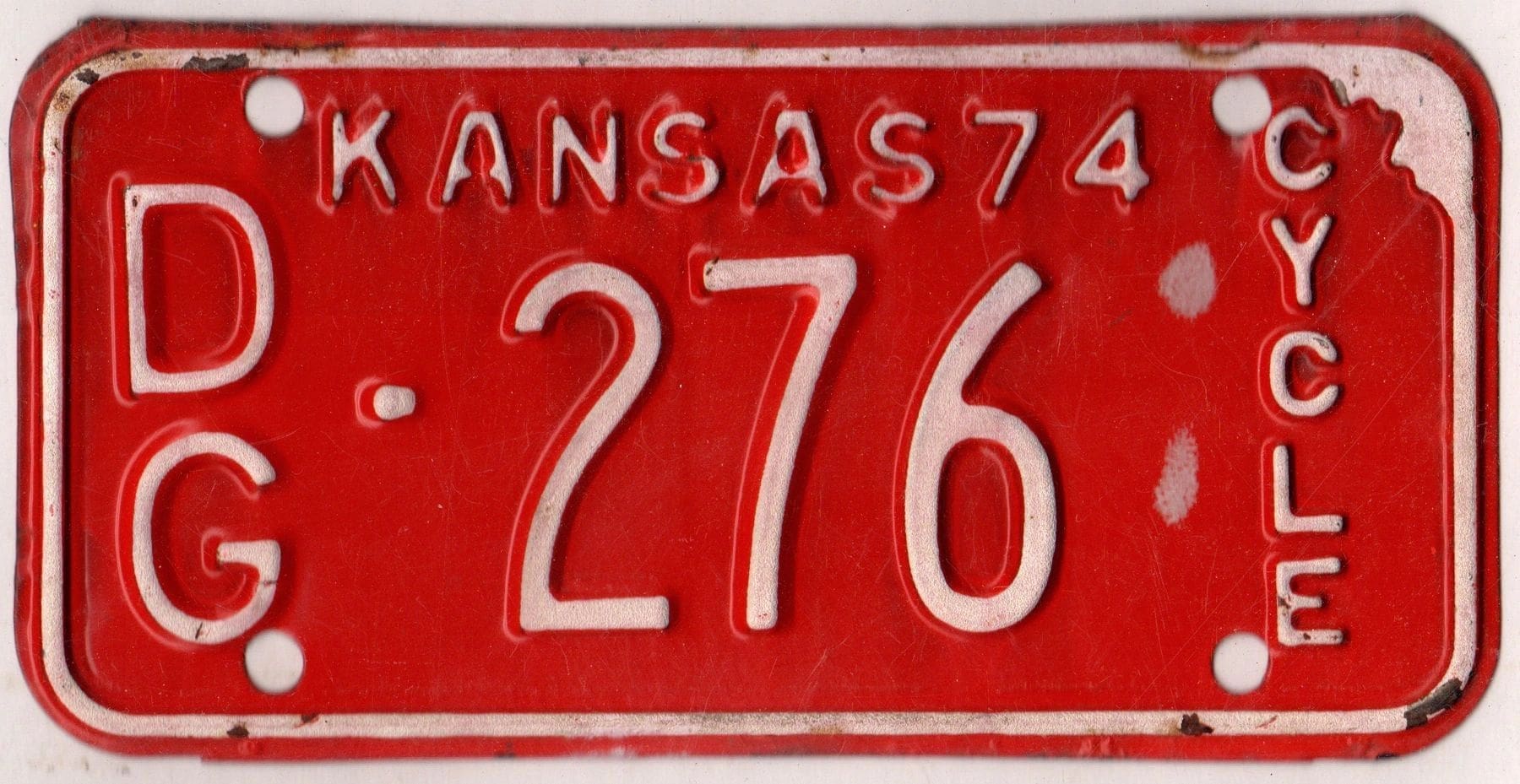 Kansas 1974 motorcycle license plate Douglas county #DG-276.
