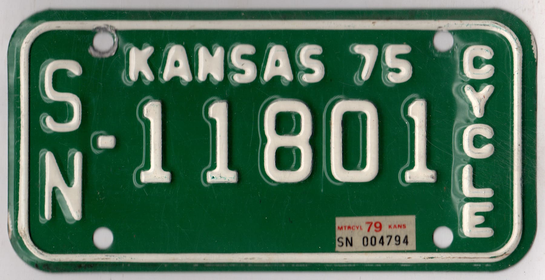 Kansas 1979 motorcycle license plate Shawnee county #SN-11801 quantity
