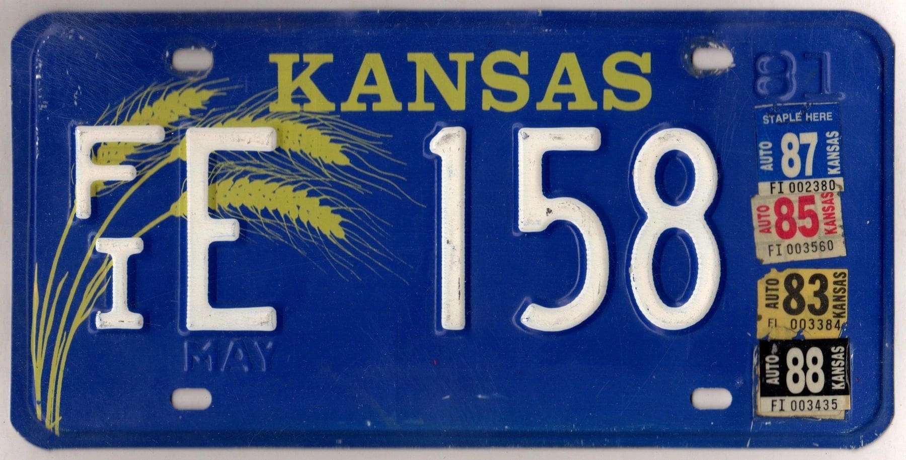 Kansas 1983 1985 1987 1988 car license plate Finney county #FI E-158