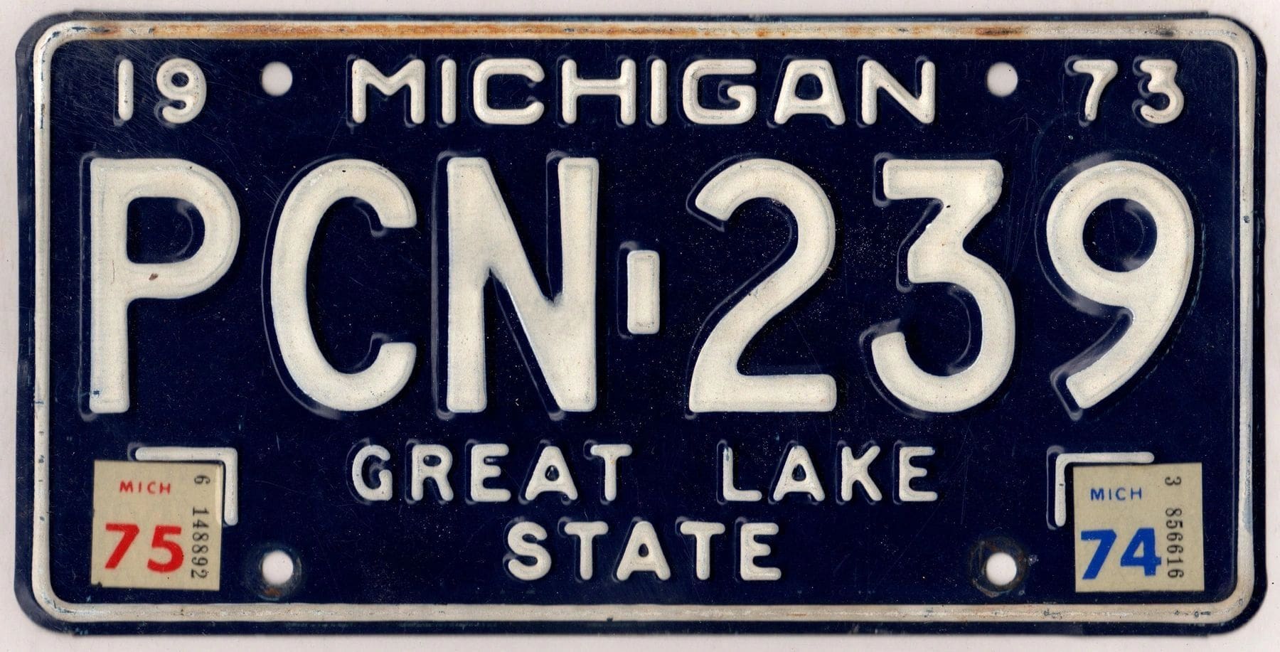 / Michigan 1973 1974 1975 car license plate #PCN-239