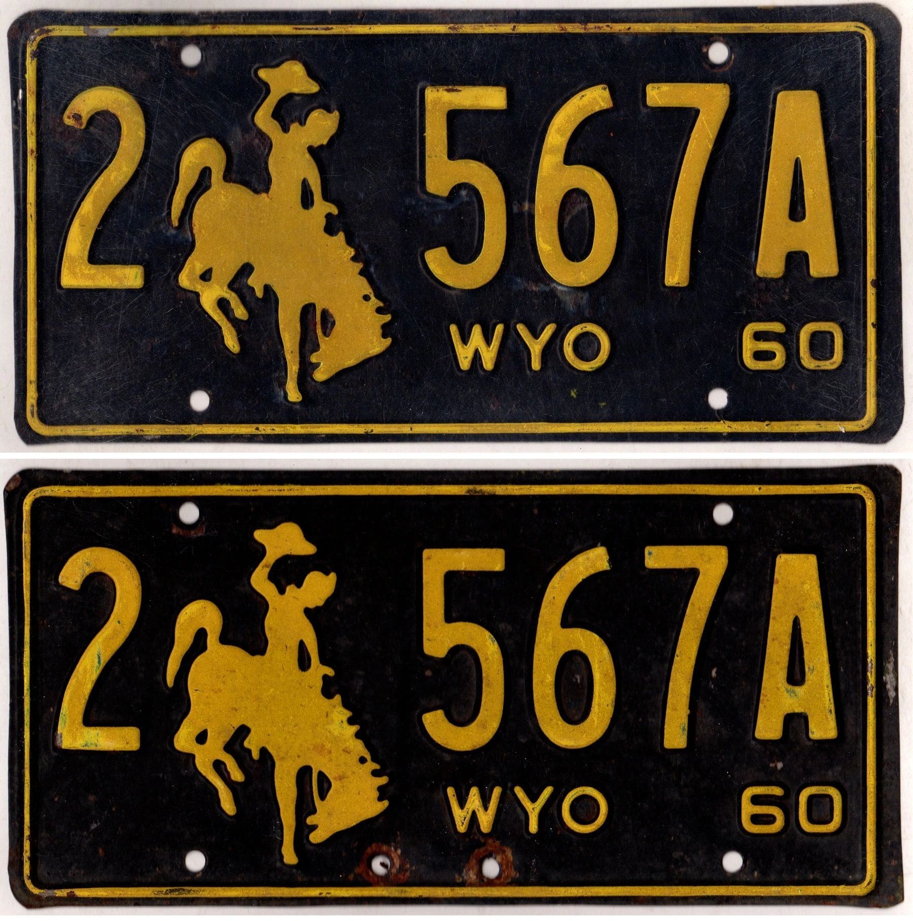 / Wyoming 1960 car license plate pair Laramie county #2-567A